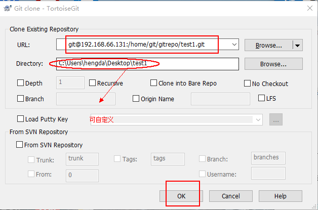 完成以上步骤后,测试一下,使用TortoiseGit客户端clone项目